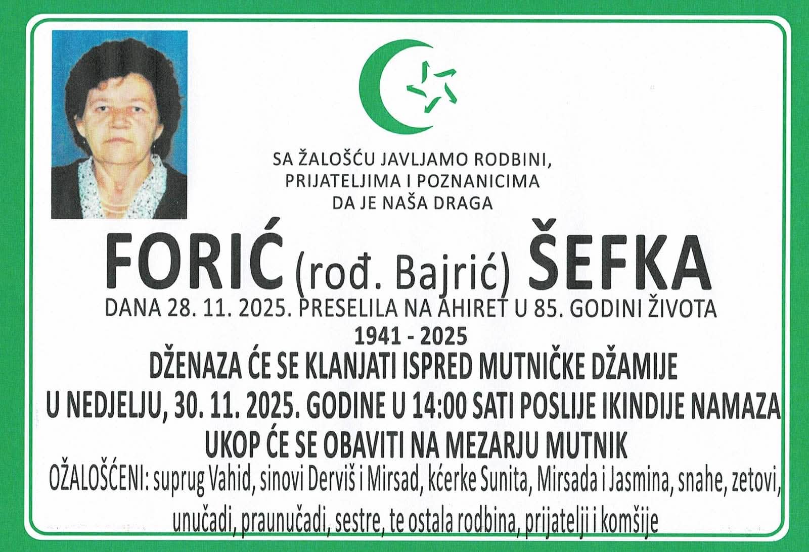Forić (rođ. Bajrić) Šefka