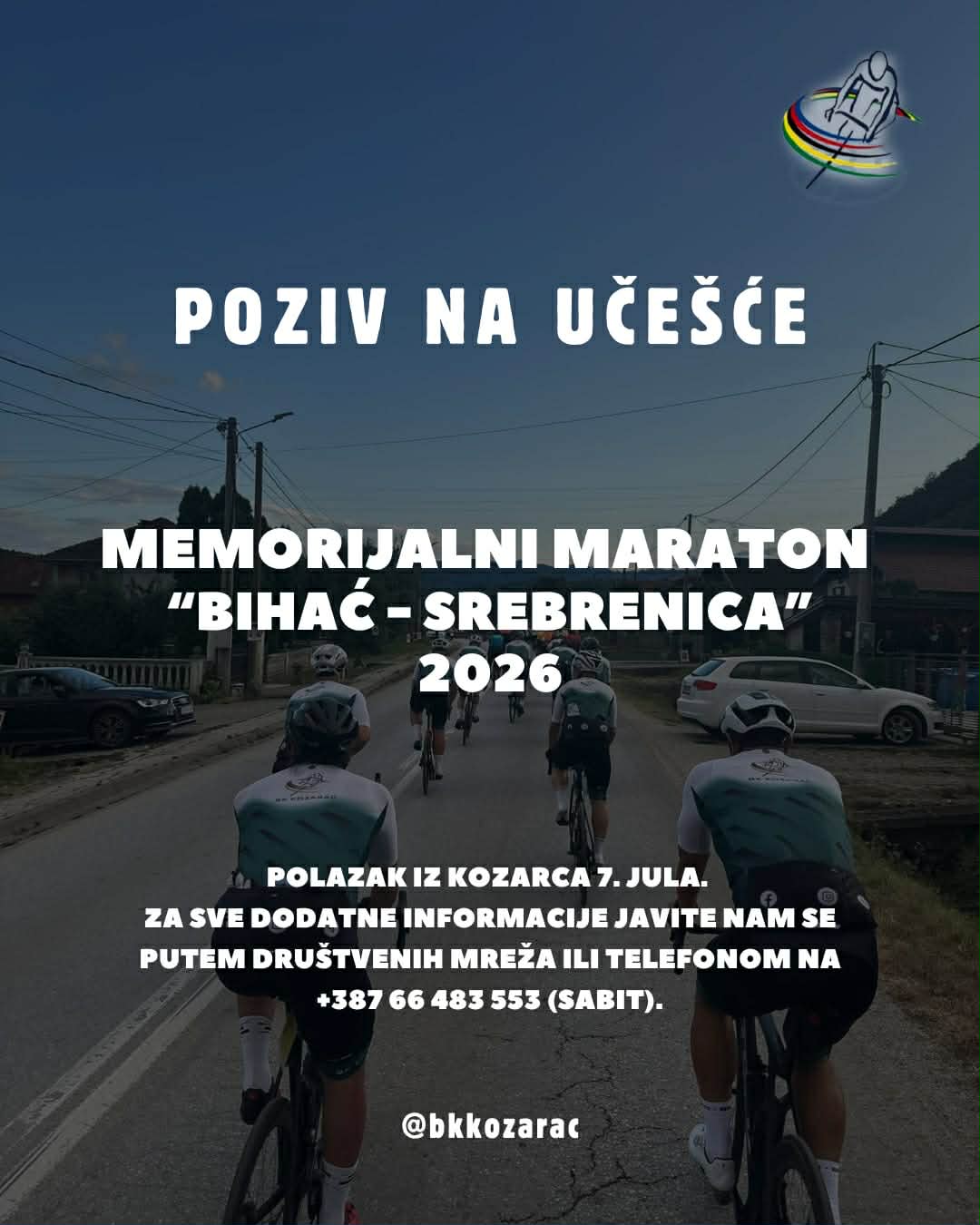 Pozivamo sve zainteresovane bicikliste i biciklistkinje da nam se i ove godine pridruže u učešću na memorijalnom maratonu „Bihać – Srebrenica“. Polazak iz Kozarca za Bihać planiran je 7. jula.