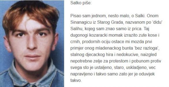 Satko pise: Pisao sam jednom, nesto malo, o Salki. Onom Sinanagicu iz Starog Grada, nazvanom po ‘didu’ Salihu, kojeg sam znao samo iz prica. Taj dugonogi kozaracki momak izrazito zute kose i crnih, prodornih ociju...